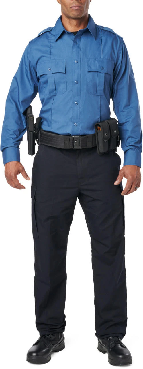 The 5.11 Tactical Men’s NJDOC PDU Class B RipStop Cargo Uniform Pant 74062US is built tough for durability and lasting comfort. Teflon coated to repel stains, liquid, and soil, the PDU Class B Twill Cargo Pant features a professional flat front design with permanent military creases and an internal gripper panel to keep your shirt securely in place, ensuring a professional profile in any setting. A patented cargo pocket design allows after-purchase striping, and each cargo pocket hides a secure covert pocket directly behind it for additional storage. The classic 5.11 self-adjusting tunnel waistband provides a secure, comfortable fit, genuine YKK zippers and Prym snaps ensure quick and reliable action, and an integrated flashlight pocket offers added utility.
