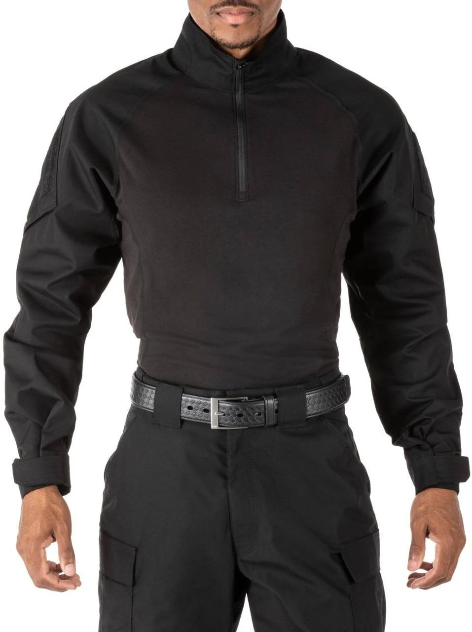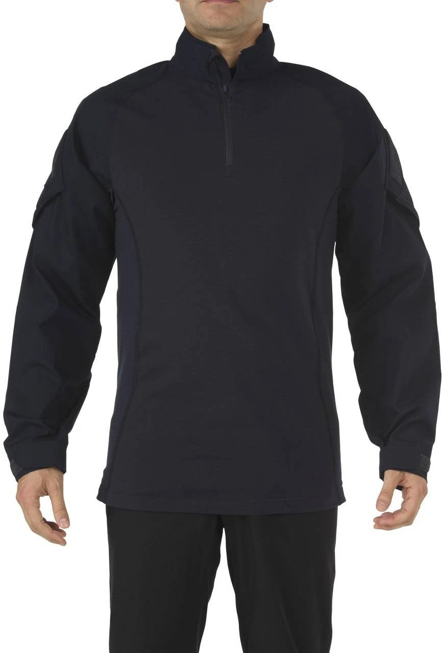 The 5.11 Tactical Rapid Assault Combat Shirt is an ideal base layer for tactical use in any operational environment. The body section consists of a poly/cotton spandex knit blend to offer an agile and flexible base with moisture wicking and quick-drying properties. The sleeves are made of an ultra-durable poly/cotton ripstop blend that can withstand the harshest environments. The saddle shoulder design takes the weight of body armor without pinching or bunching. The large shoulder pockets provide quick and convenient storage. Mesh panels offer enhanced breathability. There is an integrated woven collar that could be worn up or down. This shirt has a quarter-zip design and flat lock seams for added comfort.