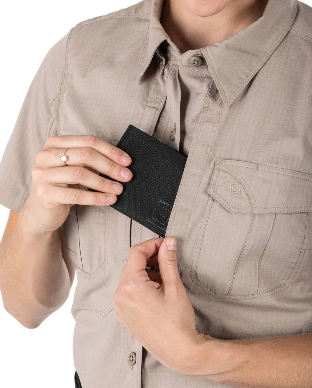 The 5.11 Tactical Women’s Stryke Short Sleeve Shirt is constructed from rugged Flex-Tac mechanical stretch ripstop fabric with a Teflon finish to repel water, stains and soil. Dual chest pockets feature flaps, and the 5.11 Ready Pockets are ideal for storing your phone or other sensitive gear. Hidden button-down collar tabs, a patented sleeve pen pocket, and Melamine buttons round out the look on a shirt that is every bit as tough as your daily duties.