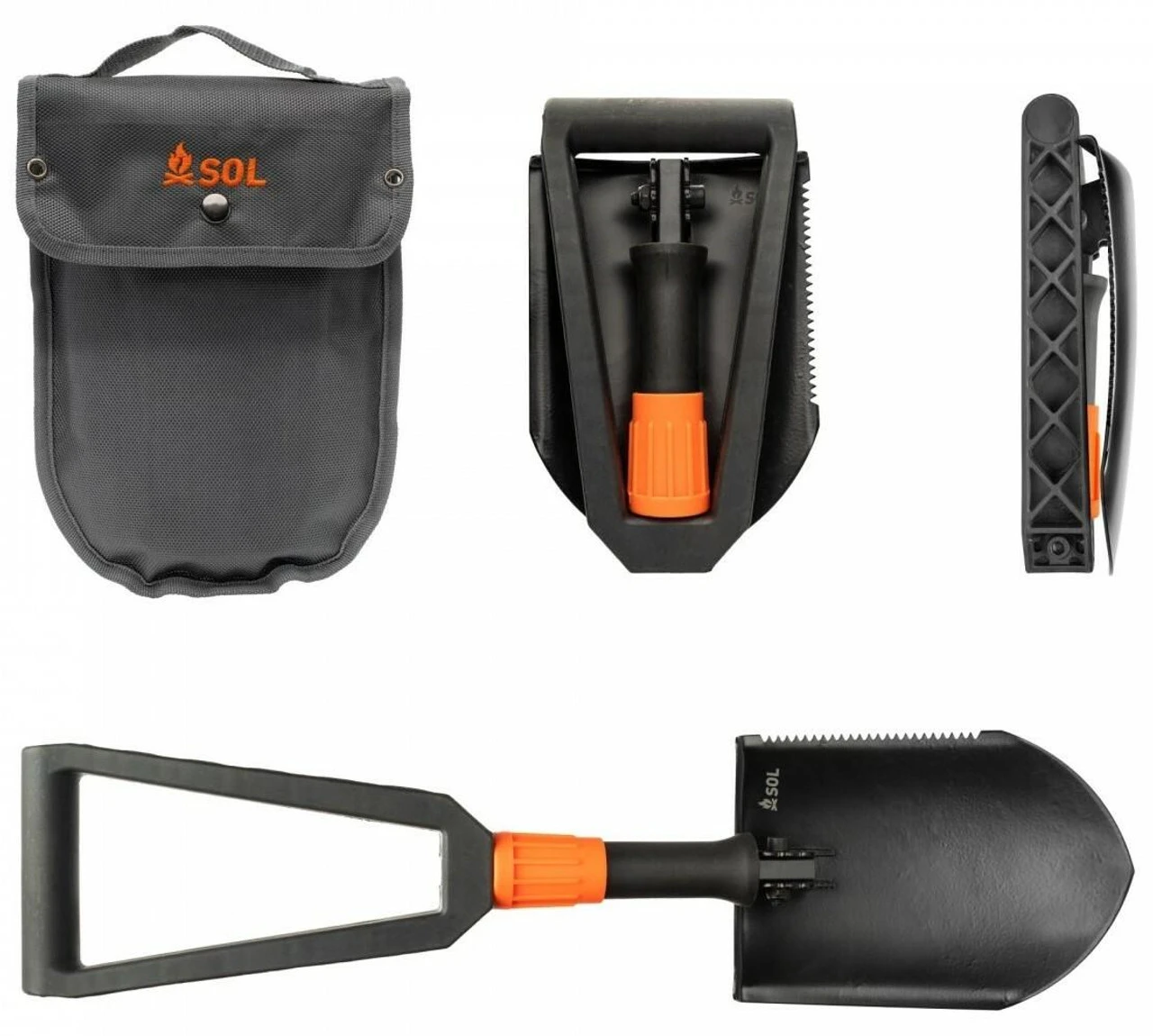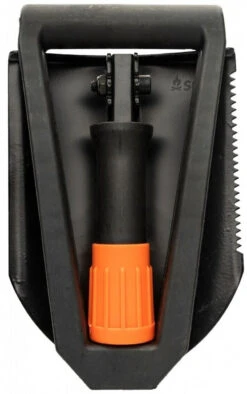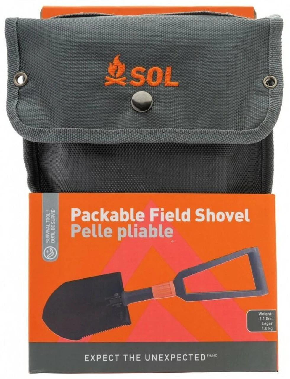 The Packable Field Shovel is a 2-pound durable carbon steel shovel head and serrated saw edge that makes quick of any job. The wide easy-grip handle will have your hands thanking you at the end of the day. To put away simply unscrew the orange fastener to fold the shovel down into its carry pouch.