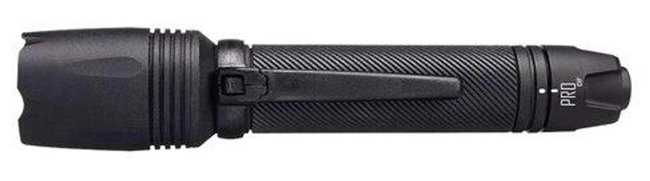 The Pro DF (Dual Fuel) flashlight boasts a primary setting brightness of 500 lumens when used with the included 18650 rechargeable battery or 610 lumens with optional CR123A primary cells. The secondary light level is user programmable at 15, 60 or 150 lumens, or strobe. In keeping with ASP’s emphasis on intuitive design and simplicity in their law enforcement tools and training, activation of the Pro light is via a single pressure switch on the tail cap press once to activate the primary, max setting, twice to activate the user programmed secondary mode.