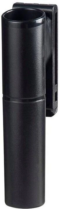 The Federal Scabbard rotates to 7 distinct positions on the duty belt and hold the baton in either a retracted or expanded mode, ready for rapid presentation while providing secure retention during dynamic confrontation. It will not rotate beyond horizontal or compromise the security of a baton. There is an adjustable internal clip that lets you set the amount of baton retention to your preference. This tough polymer scabbard features the exclusive snap-loc belt loop which attaches anywhere on the belt without having to thread or unthread other duty gear. The belt loop features an indexed slide track and bar that adjusts to fit all common duty belt and dress belt width or MOLLE Gear.Â