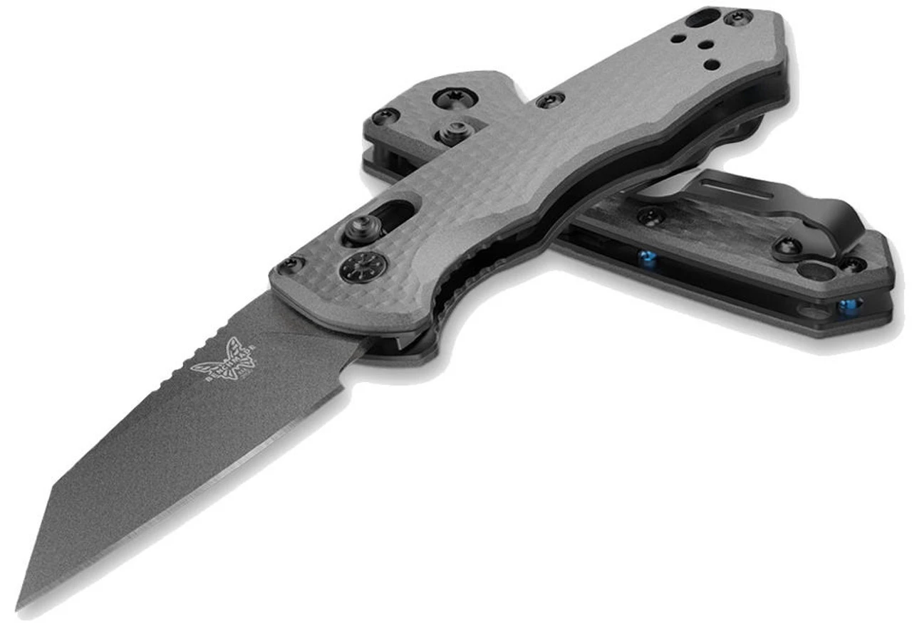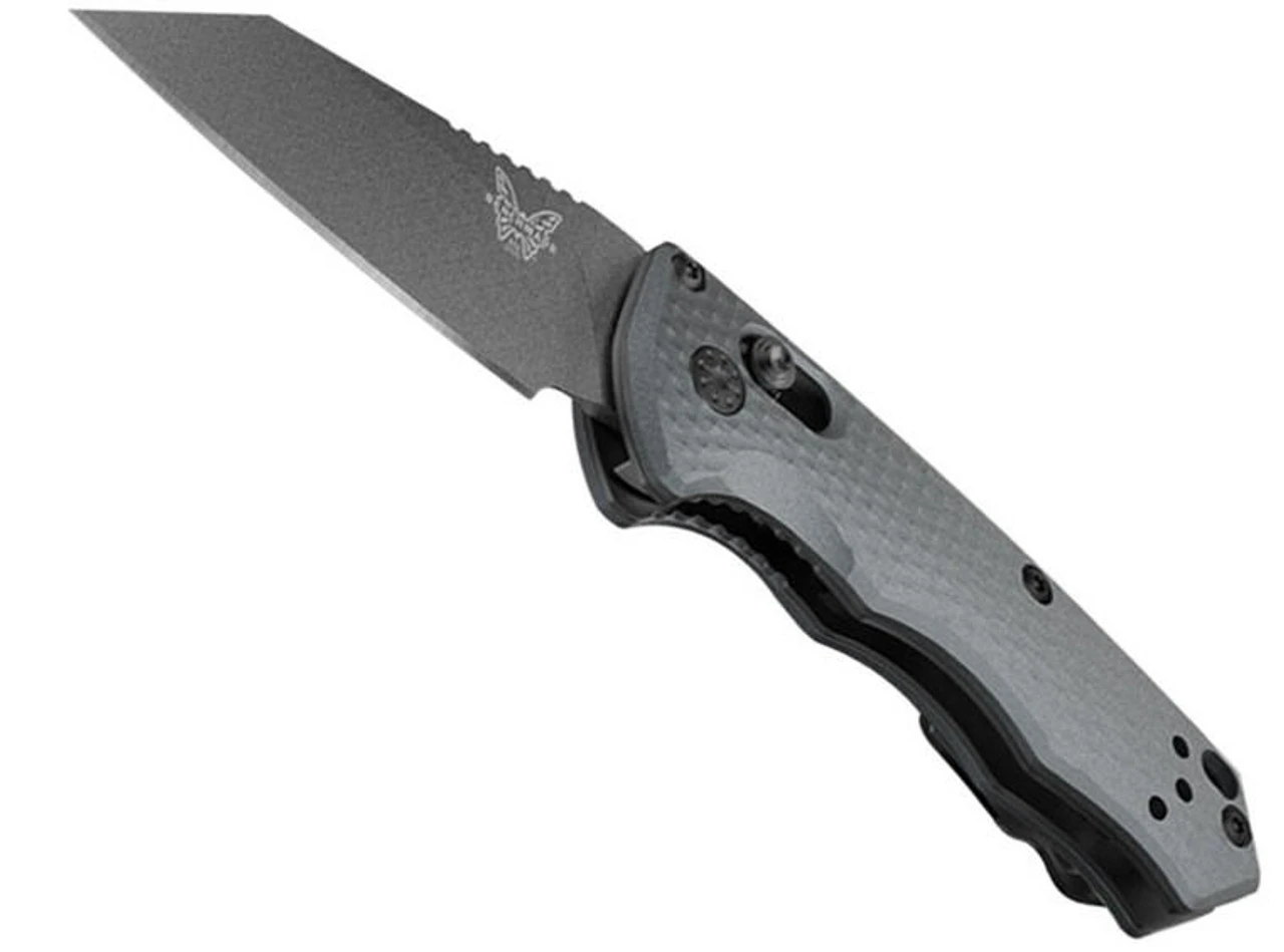 The Benchmade 2900BK Charcoal Grey Auto Immunity Wharncliffe Tactical EDC Automatic Knife is a mid-sized tactical/EDC folding knife with a Wharncliffe-style blade. This blade shape is popular, both for its aggressive look, and accessible tip. With a blade made from CPM M4, it will be a while before the need to sharpen the blade. Lightweight, strong aluminum handle scales clad over steel liners make up the handle.