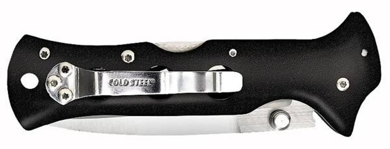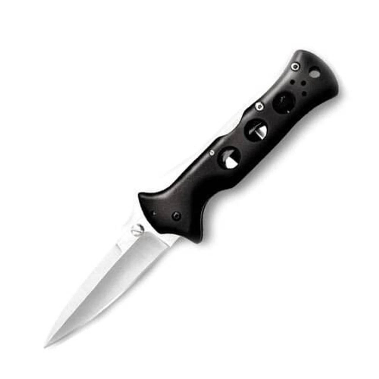 The Cold Steel Counter Point II Folding Knife is designed as a boot knife that’s more convenient to carry. Featuring a stiletto-inspired spear point blade with a pronounced false edge for extreme penetration. Built with Japanese AUS10A Steel that’s corrosion and stain resistant and takes a fine edge. The handle is made from Griv-Ex and heat treated aluminum liners and houses the Tri-Ad lock for maximum durability.