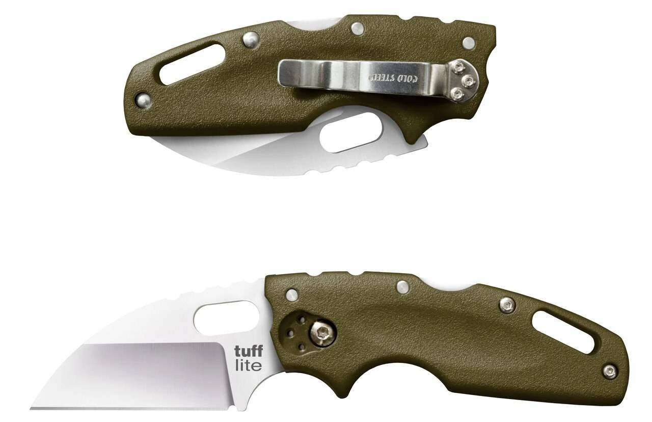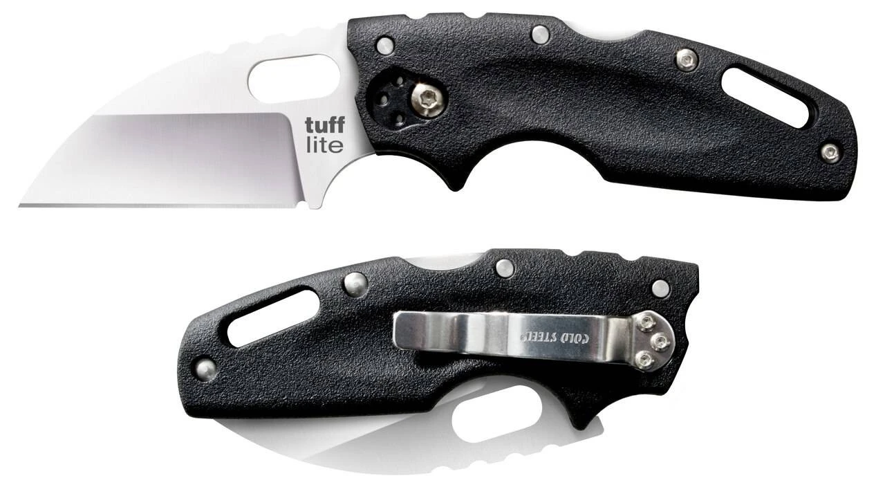The Cold Steel Tuff Lite Plain Edge Folding Knife is light without sacrificing durability. This knife will fit perfectly into your pocket, clip to your waist band, or around your neck with an added lanyard. The wide, hollow, ground blades are extremely sharp and easily sheer through materials. Because it features slanted points, it offers deep penetration and precision cutting potential. The Tuff offers exceptional grip thank to the engineered Griv Ex handles that offer a tremendous strength to weight ratio and feature our state of the art Tri-Ad lock.