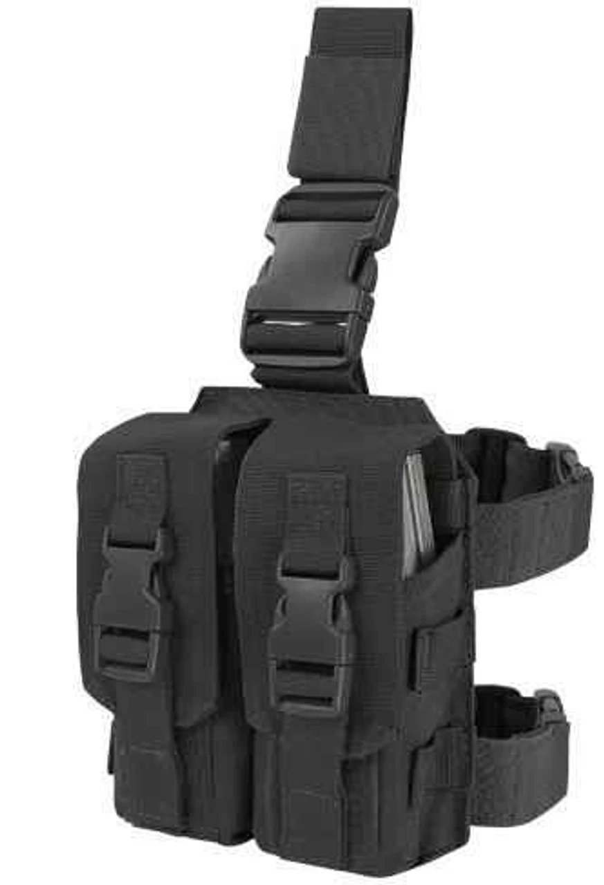The Condor Drop Leg M4 Mag Pouch is a perfect accessory for reliable ammunition storage to position for easy access. The design places is at the middle of the thigh, this allows for a secure fully adjustable fit. The anti-slip stitching with a quick release buckle allows for a quick relocation or removal. The pouch holds up to four M4 magazines and features secure hook and loop cover flaps. The quick release buckles on the flaps allows maximum ammunition safety.