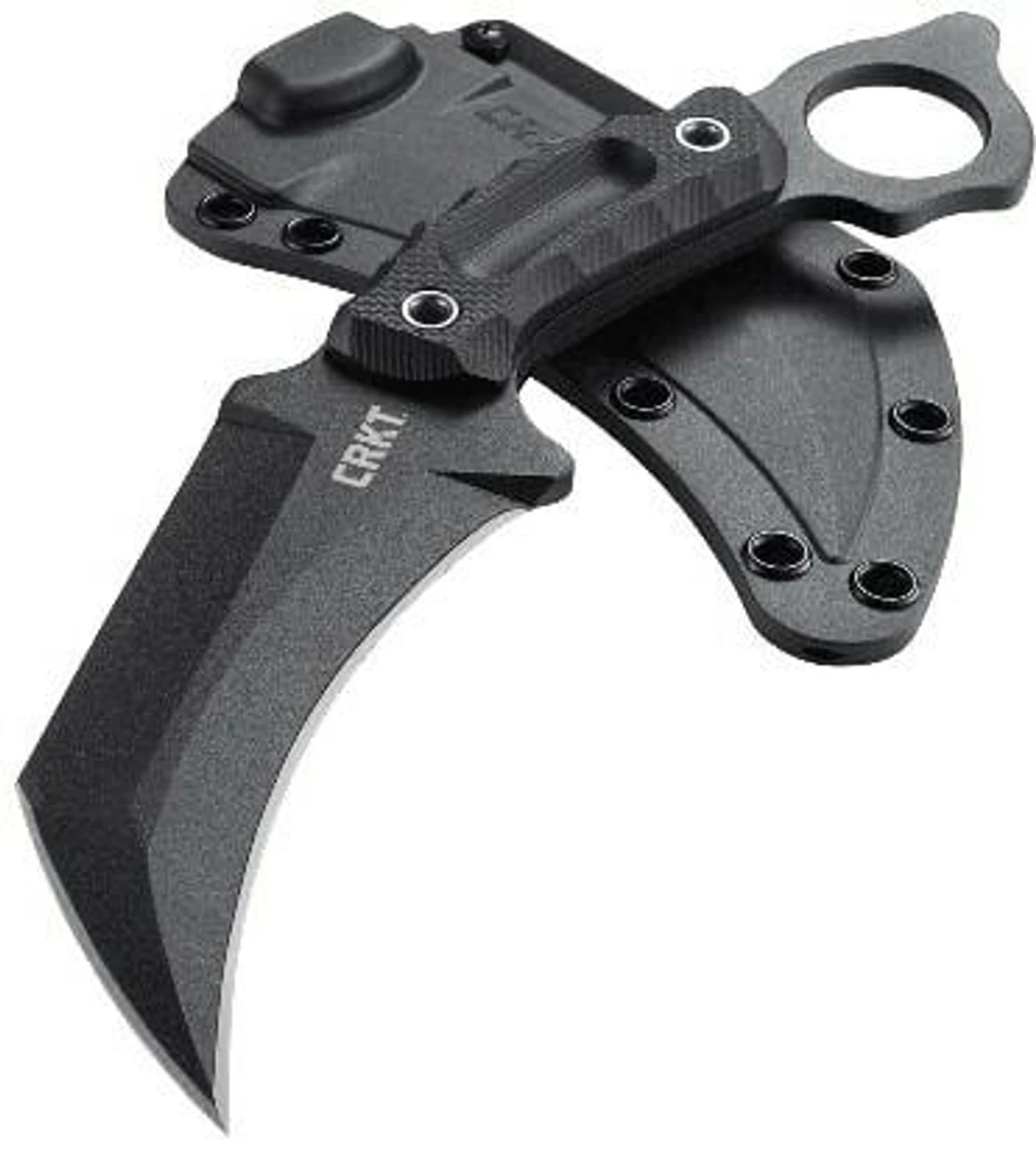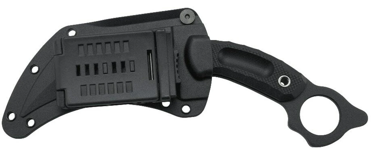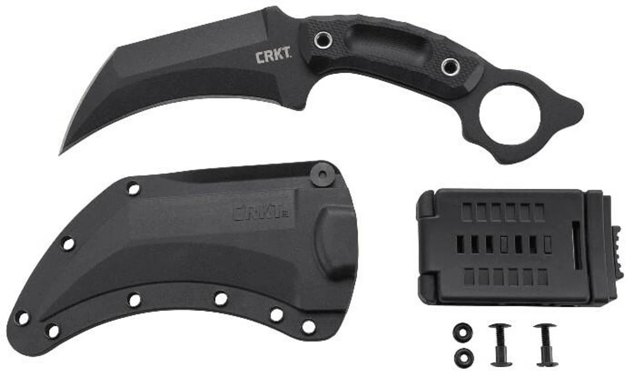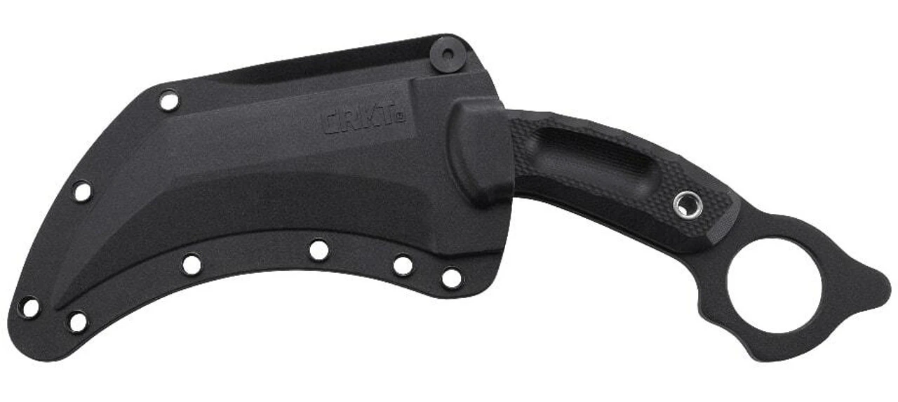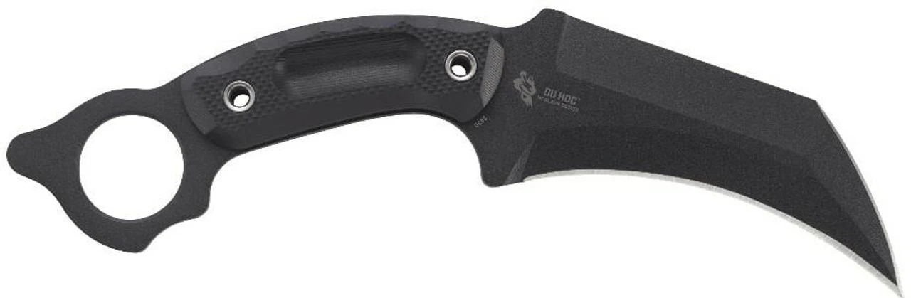 The CRKT Du Hoc Fixed Knife is a powerful tactical carry with an ominous 5″ carbon steel recurved blade that is sharp on the nose and the belly and a thumb ring that sits proudly atop the textured G10 handle for an unbreakable traditional karambit-style grip. The included tough glass-reinforced nylon crafted secure sheaths allows for ease of access and safety of draw.
