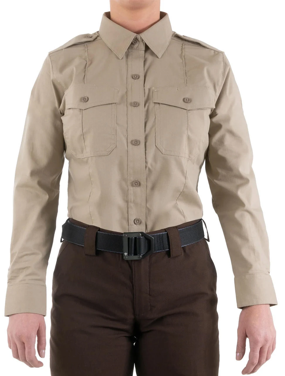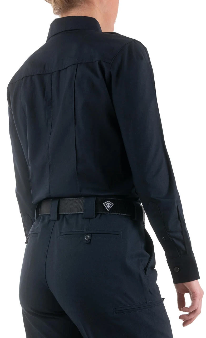 The First Tactical Women’s Pro Duty Uniform Long Sleeve Shirt is designed with direct feedback from public safety professionals. Built with V2 Fabric Technology, this Class A dress uniform has all the features you need to always look professional while delivering maximum comfort on duty.