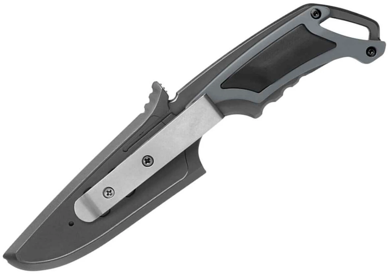 Gerber’s Basic fixed blade knife has a sturdy full-tang handle and TacHide scales. With an overall weight of just 4 oz., this knife is great for lightweight day hiking and backpacking. The partially serrated edge gives you a wide range of cutting capacity. It comes with a fitted Gerber sheath that features a reversible pocket clip for left or right-handed use. The sheath locks the knife in tightly for secure carry.
