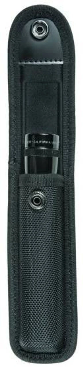 The Hero’s Pride Flashlight Holder 1062 is made using 1680 denier ballistic to provide lightweight comfort and durability. The molded design secures equipment in place, giving the user quiet and easy in/out access. The hidden snap design offers a professional look while the reinforced USA DOT snaps provide reliable snap/re-snap functionality.