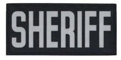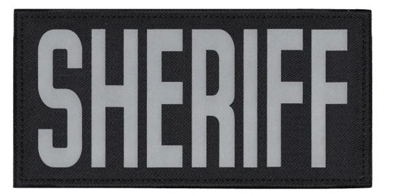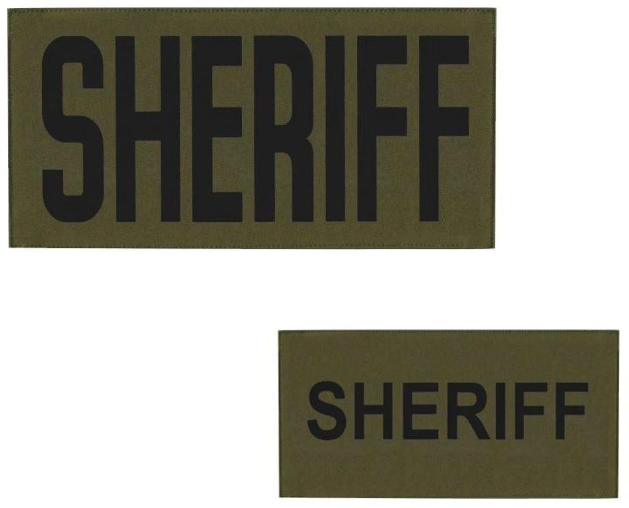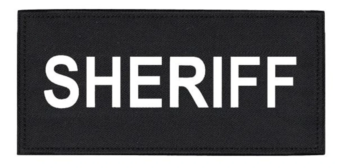 The Hero’s Pride Sheriff Tactical Chest and Back Set is made with high quality materials. It features bold text on various colored backgrounds.