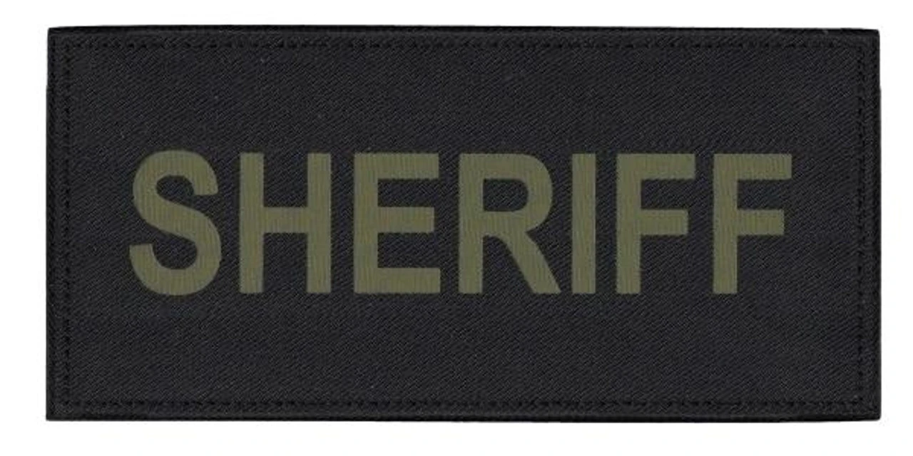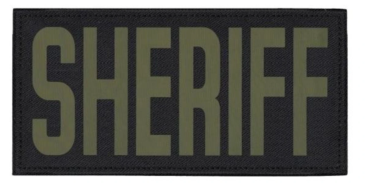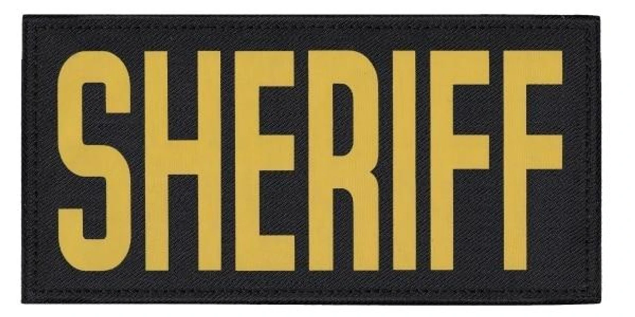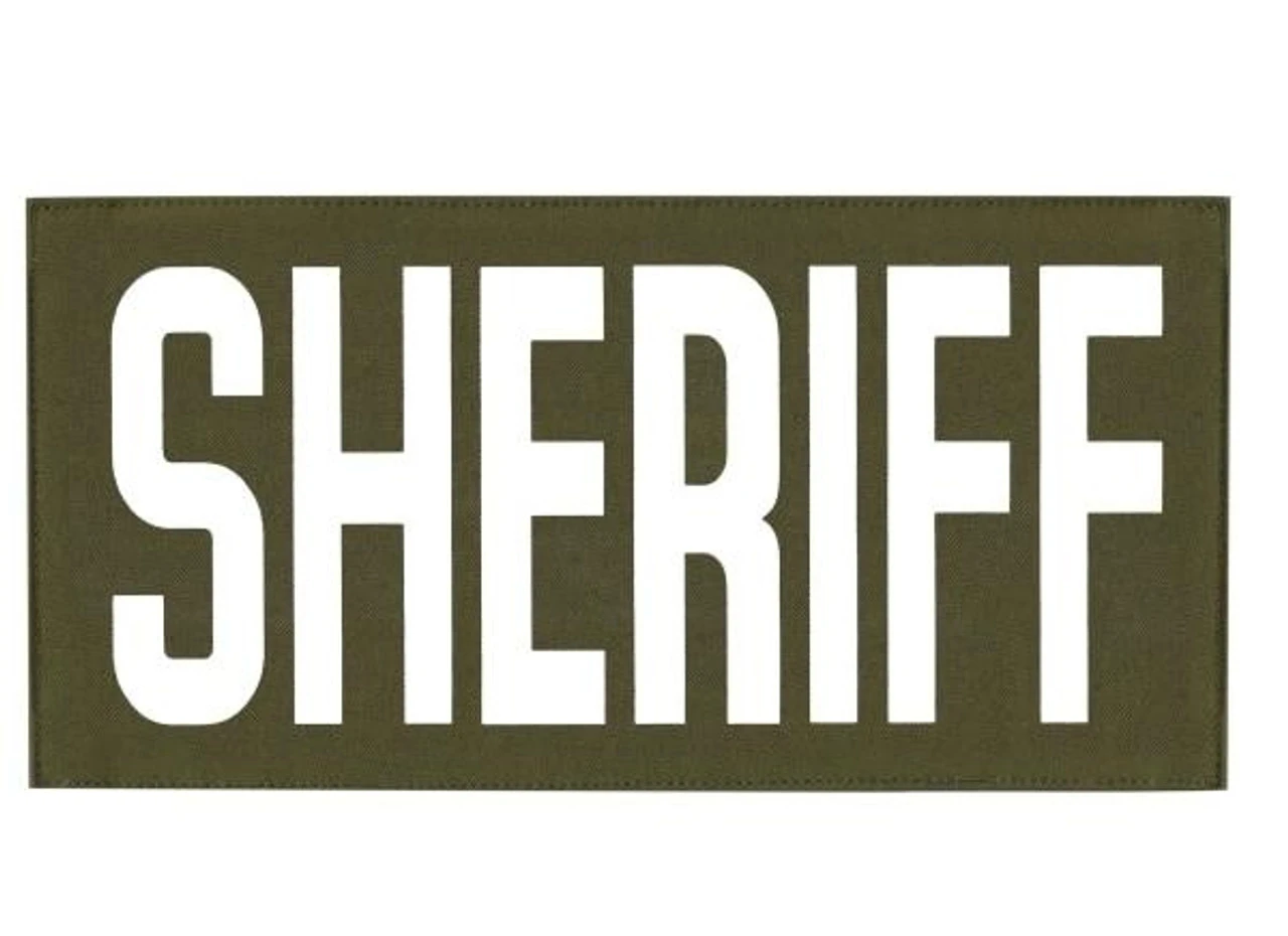 The Hero’s Pride Sheriff Tactical Chest and Back Set is made with high quality materials. It features bold text on various colored backgrounds.