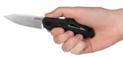 The Kershaw Airlock Folding Knife 1385 has a slim, sleek look with a distinct cutout in the handle that mirrors the handle shape. A custom pivot works with the machining handle for an integrated look. This blade is also equipped with a reversible pocket clip that resembles a pen clip and disguises this blade perfectly.