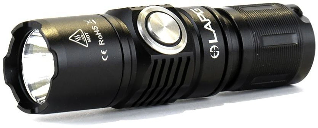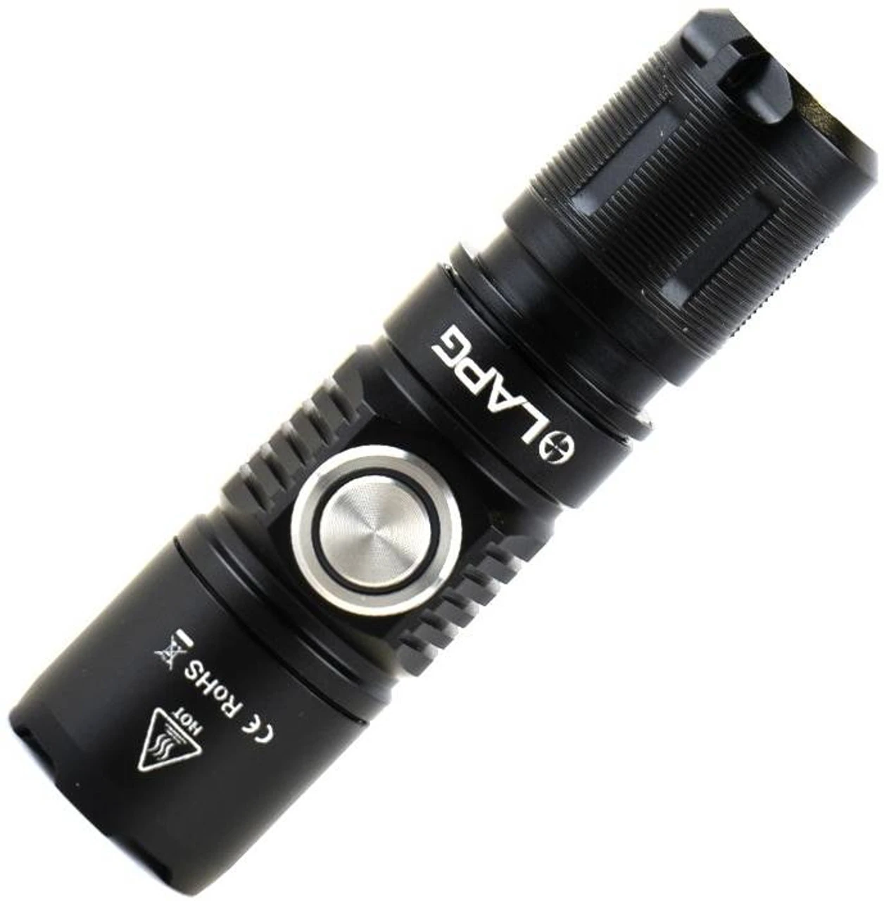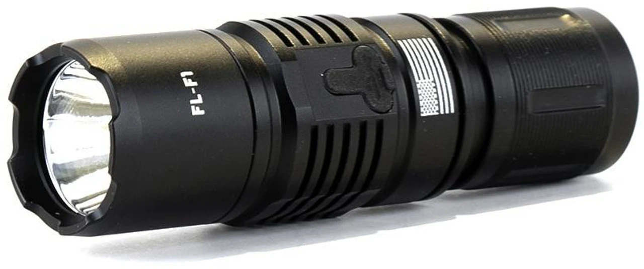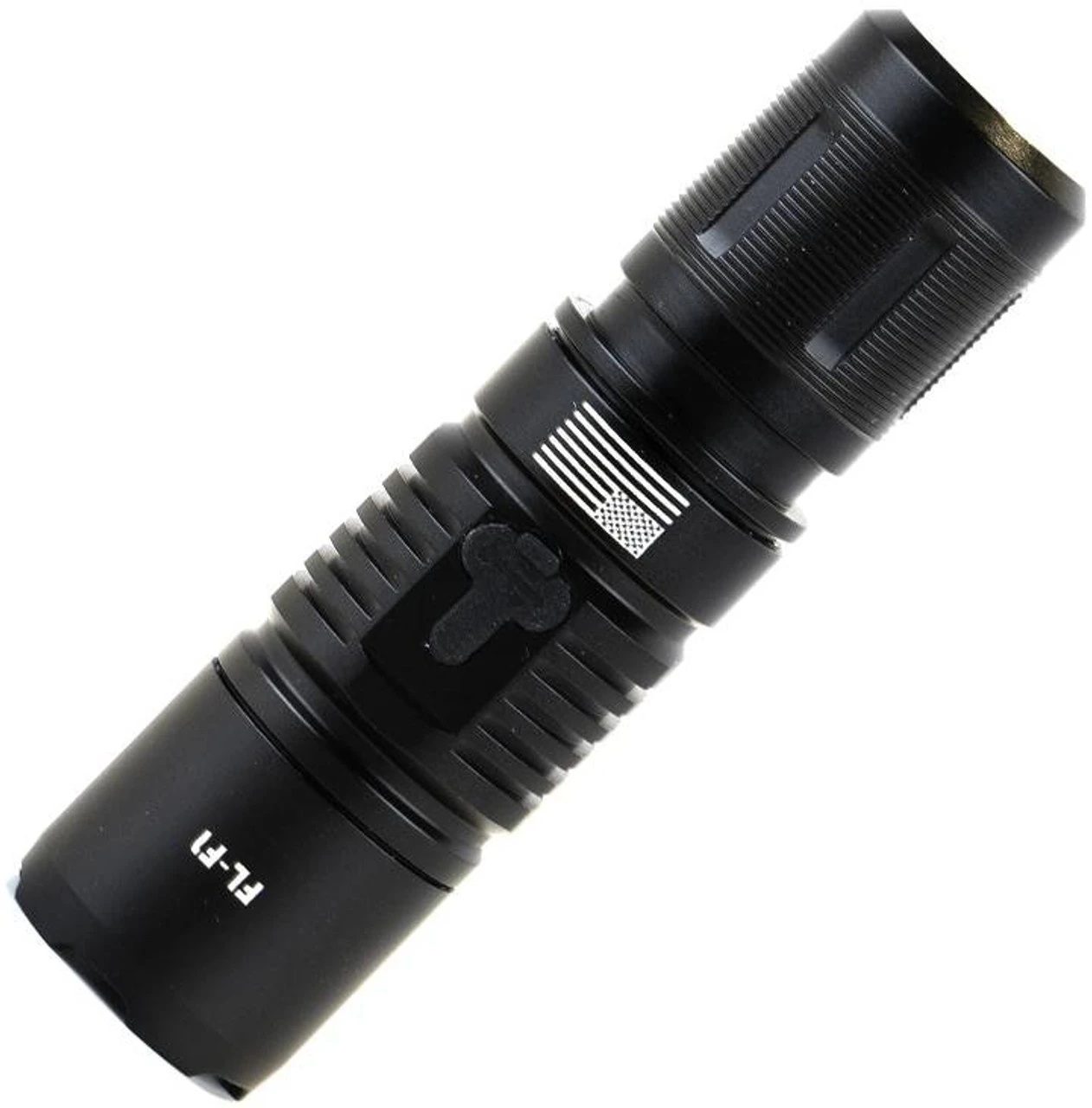 The LA Police Gear F1 1,000 Lumen Flashlight is a mini rechargeable side switch LED flashlight. It has a CREE XP-L2 LED, which when powered by the included 16340 RCR123A battery has a max output of 1,000 lumens. This tactical flashlight has four output modes (Turbo, High, Medium, and Low), as well as a strobe function. It also has a magnetic tail cap for hands-free use.
