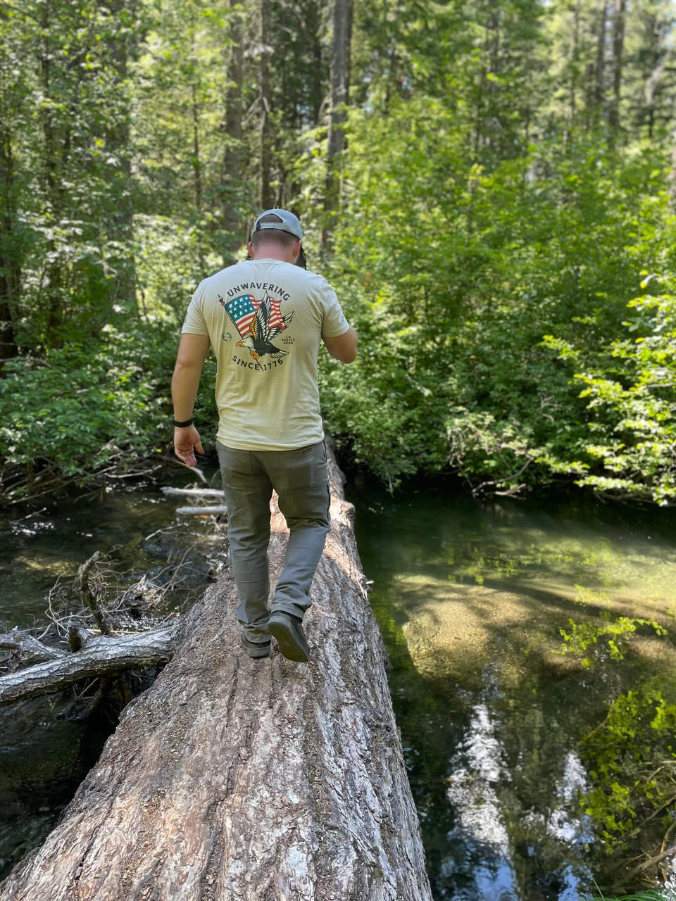 The LAPG Unwavering T-Shirt features a large back decal and a small decal on the chest. This shirt is printed on a soft, breathable 60/40 Combed Ring-Spun Cotton/Polyester CVC Jersey fabric.