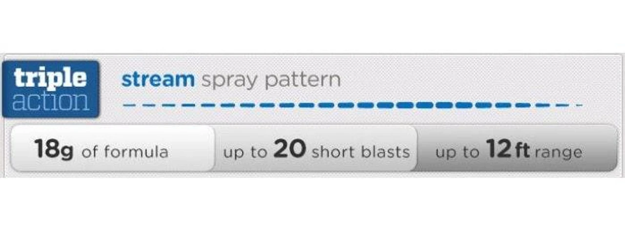 - Contains 20 bursts with a spray range of 12 feet, but always replace or refill after use