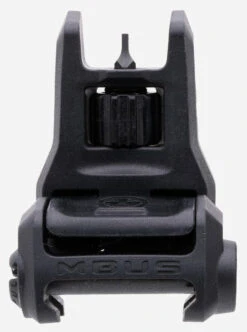 Tool-less elevation adjustment and dual width enhanced front sight post, similar to MBUS Pro. 0.44″ high when folded and 1.15″ wide at widest point. Standard AR-height when deployed.