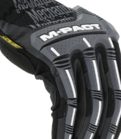 The Mechanix Wear M-Pact Open Cuff Black/Grey Gloves protect working hands on the job with Thermoplastic Rubber (TPR) knuckle protection that absorbs blunt force impact and meets EN 13594 impact standard. The Open-Cuff M-Pact features an easy on/off stretch elastic cuff and D3O palm padding to dissipate high-impact energy as the day goes on.
