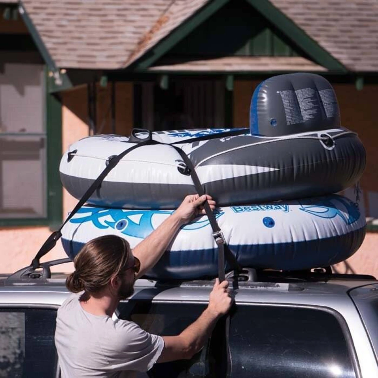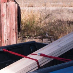 Your customized system can be used in two ways: a fixed end configuration or a traditional loop configuration. In the fixed end configuration, make a loop in one end of your webbing to attach it to an anchor point while the loose end can then be placed over or looped around your gear and around the other anchor point. A unique advantage of the Dual CamJam is that Cam 1 allows you to easily slide it onto the webbing and to adjust the buckle placement easily and securely within your configuration. Then complete your configuration by wrapping the strap around your load and other anchor point and insert the webbing end through Cam 2 to easily tension the load in place. This set up uses half as much webbing as traditional tie down straps which function in a looped configuration. Another major unique advantage of this configuration is that you are able to create a 3-to-1 mechanical advantage. For example, you only need to apply 50 pounds of force to achieve a 150 pound result – a great advantage over using more complicated ratcheting cam straps.