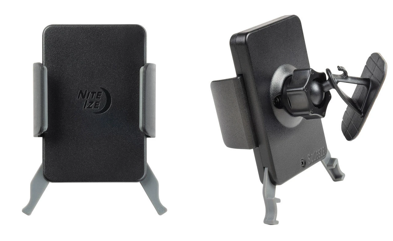 The Nite Ize Squeeze Universal Dash Mount is easy to set up and secure, this ball-and-socket mount is designed to hold almost any phone with a case and accessories, keeping your apps and maps in clear view with just a squeeze. The Squeeze Clamp features grippy arms and inner continuous force springs that amplify the hold of your phone, keeping it in place through off-roading adventures, tight turns, road trips, and beyond. Plus, the easy-to-squeeze levers at its base allow for effortless securing and releasing-no extra grip strength needed.