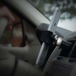 The Nite Ize Steelie FreeMount Vent Kit works with most types of vehicle vents and most any phone on the market. Phones stay gripped securely in the adjustable FreeMount, which then connect magnetically to the Vent Mount. The FreeMount arms can be adjusted to hold phones in place with a firm squeeze, and the release button on the back makes it easy to remove your phone with a smooth one-handed motion. The Vent Mount is a portable solution that can be moved easily from car to car by simply unsnapping the strong cam locking lever, then clicking it back in place on the next vehicle vent. The round shape of the ball on the Vent Mount allows the FreeMount to smoothly articulate for endless viewing angles. As an added bonus, when the FreeMount is on your phone, it allows it to connect magnetically to other convenient surfaces like your refrigerator or tool box.