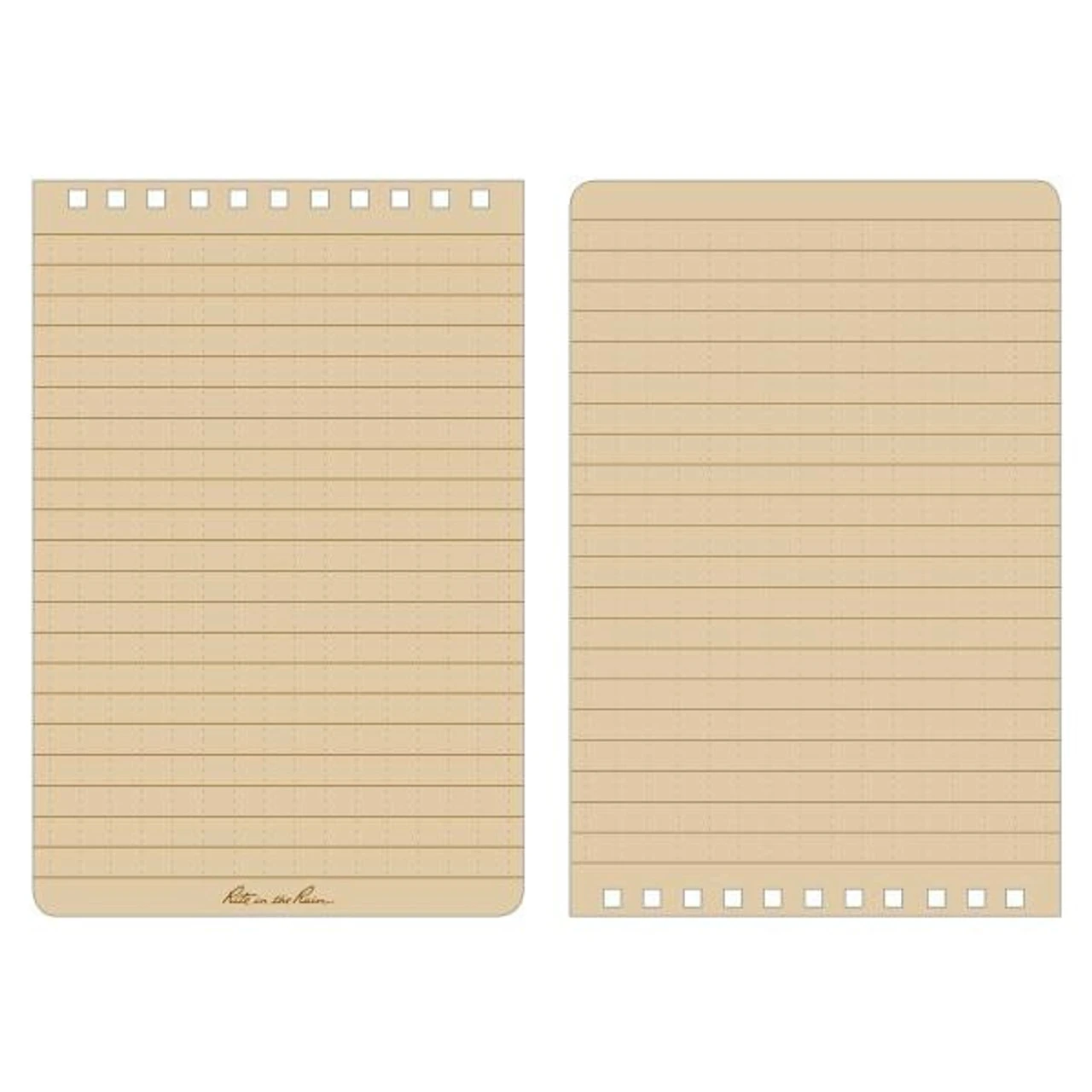 The global standard for tactical colored notebooks. Protect yourself and your notes by using the Rite in the Rain Tactical Pocket Notebooks. These spiral bound notebooks have 100 Universal pages (50 sheets) in Tan. With the Universal Pattern you can use this text for notes and scaled drawings. Useful reference material is also printed on the back and inside covers.
