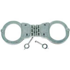 Hinged design further restricts movements for special applications. Folds flat to fit most standard pouches, uses a standard key and features double lock slot configuration. Available in both nickel and blue. Weight: 11 ounces. Has double lock slot configuration for increased security.