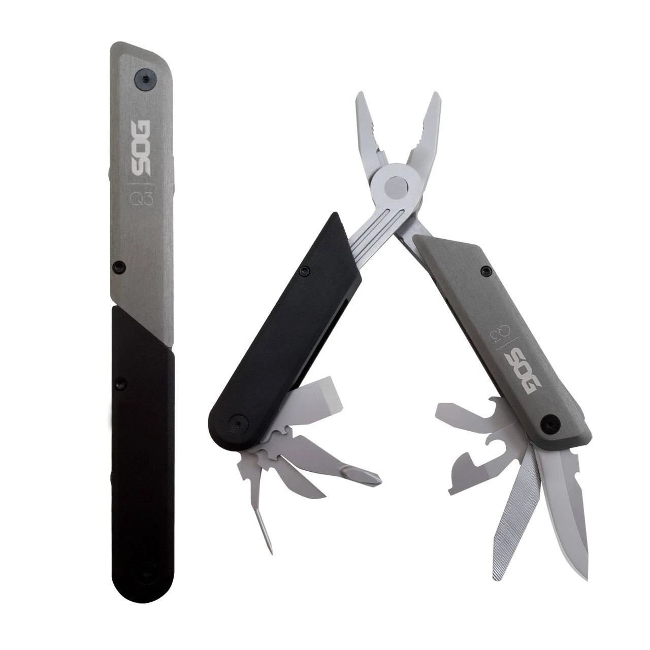 The SOG Baton Q3 Multi Tool is designed to endure and will get you out of a wide array of tough situations. Based on the classic multi-tool, the Q3 has your basic essentials for wilderness and urban adventure so you have what you need before you know you need it. Baton is a family of SOG multi-tools that provide the functionality of quality tools while fitting the lifestyle and aesthetics of modern adventurers and handymen. Though all are designed for everyday carry, each one is for a different purpose and user. The Batons are about the same dimensions as the common ink marker and fit easily in a pocket, bag, or backpack. The sleek, minimalist design opens up to reveal a variety of useful tools. Each Baton’s toolset accommodates separate users: office & administrative, urban emergency, basic wilderness & urban essentials, and advanced wilderness & urban essentials.