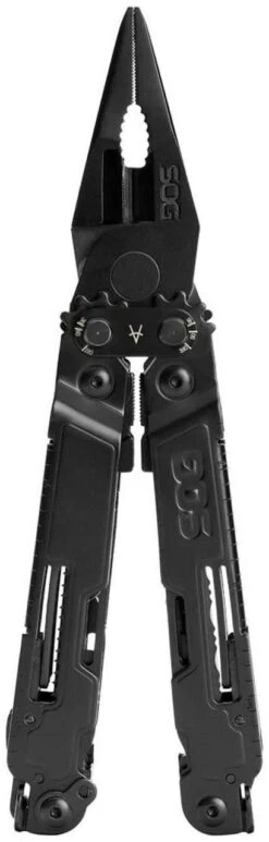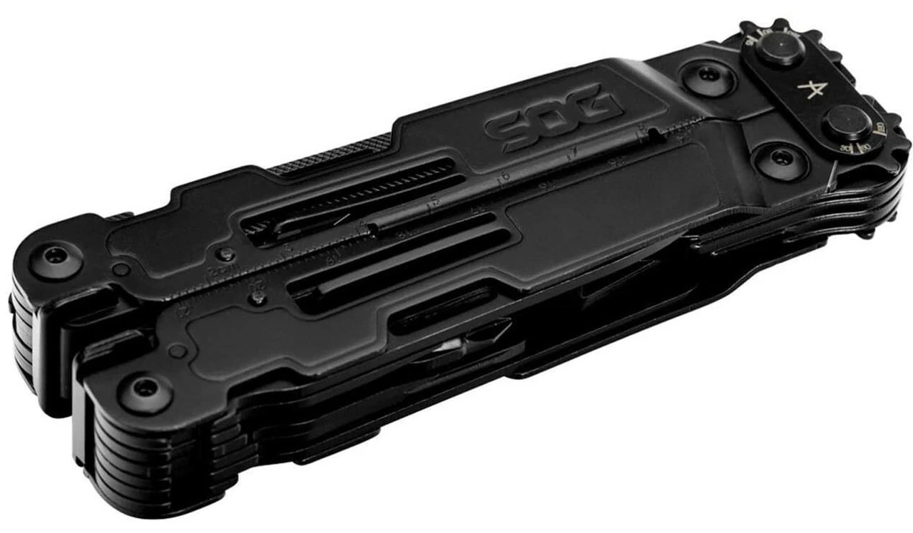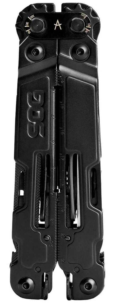 The SOG PowerAccess Deluxe Black Multitool has 21 tools the most of any SOG product to date. The Deluxe features SOG compound leverage for maximum gripping strength. Housed in a nylon sheath with 12-piece hex bit kit. Originally available in a satin finish, now available in stealthy black.