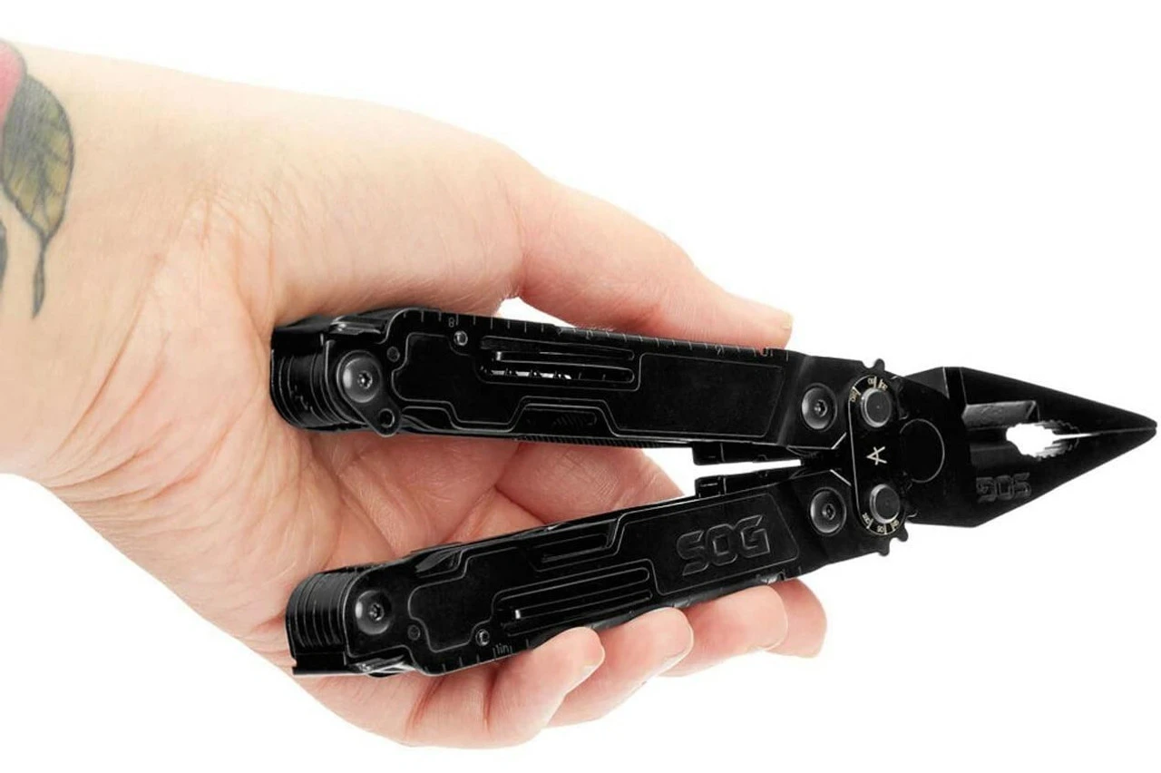 SOG’s proprietary Compound Leverage technology works by employing multiple pivot points that generate greater handle travel in relation to plier movement. The result is a leverage advantage of approximately twice the power of a conventional multi-tool, which makes every cut smoother and easier.