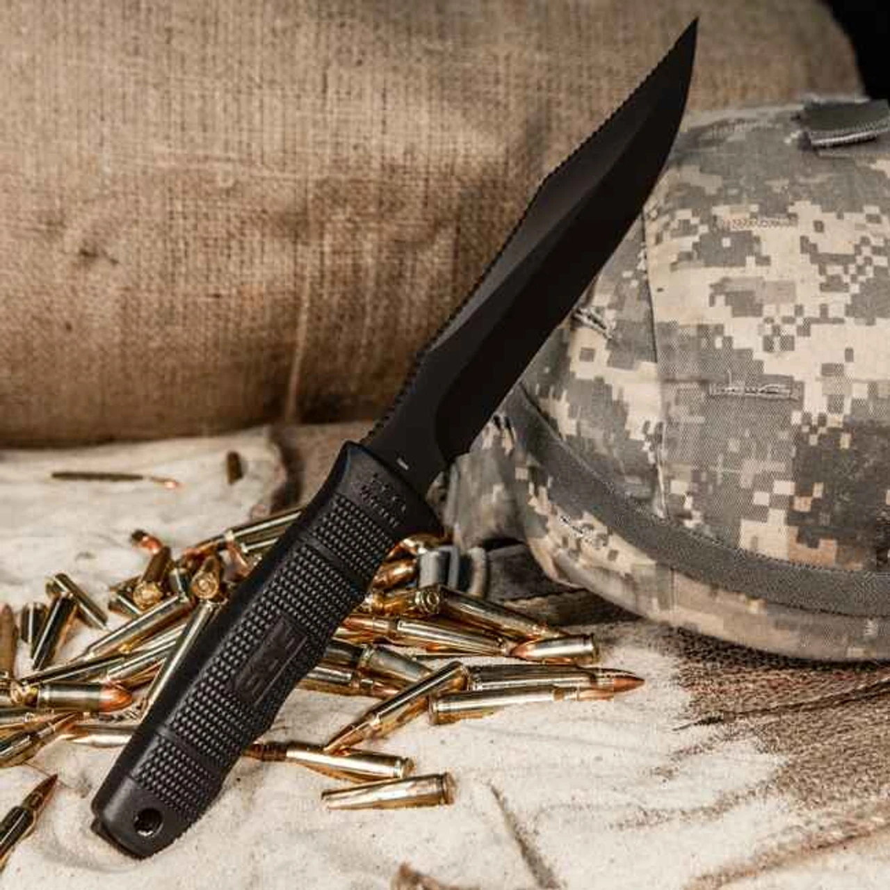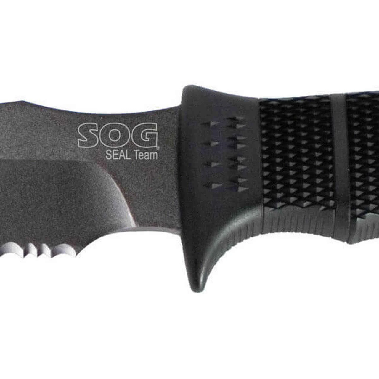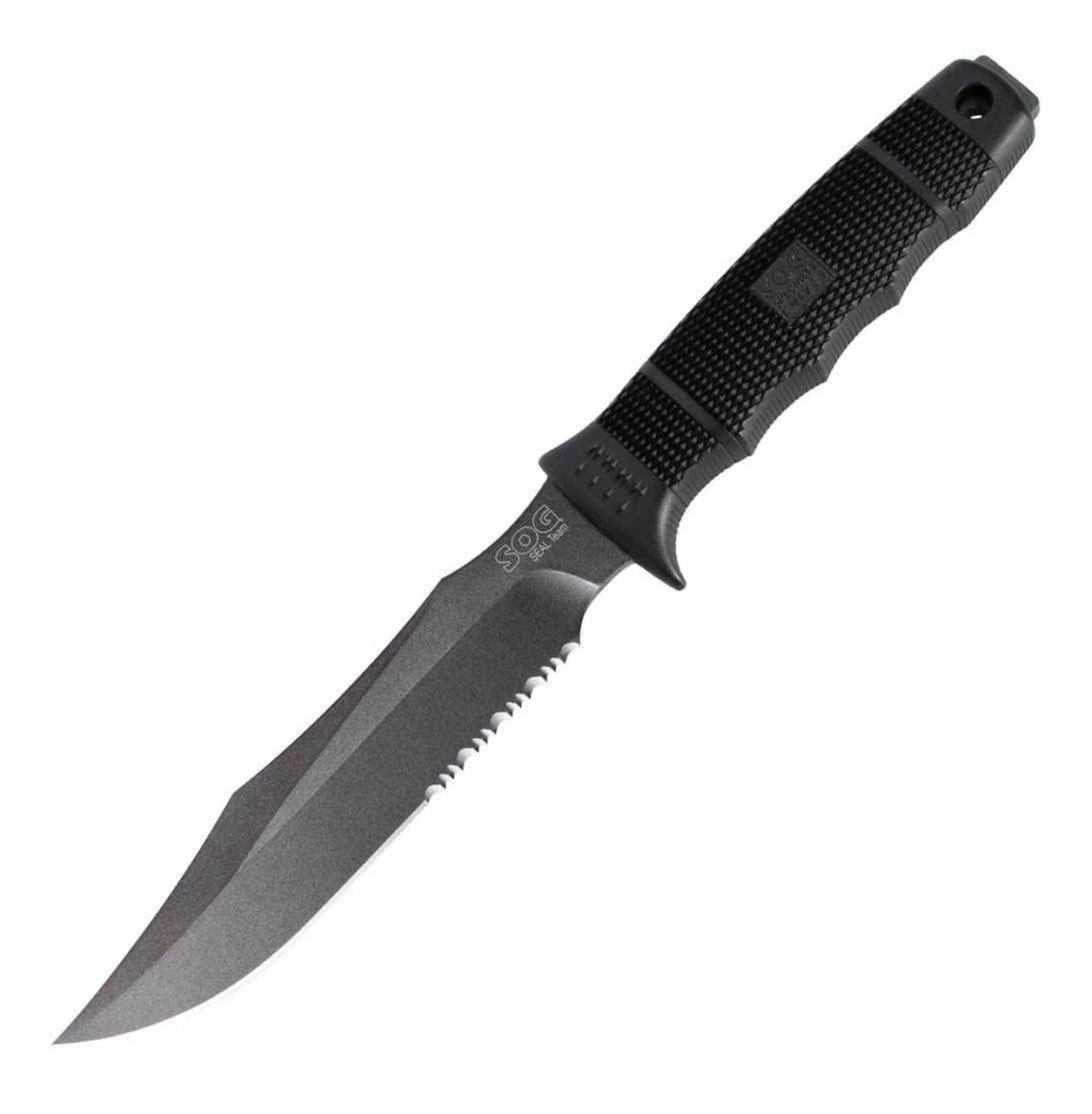 The SOG Seal Team Elite is a durable tactical fixed blade designed for the front lines with a large 7″ blade and glass-reinforced nylon handle. Available with MOLLE compatible sheath. The SEAL Team series carries on the proud tradition of quality and service renowned in the original SOG SEAL Knife 2000. The SEAL Knife surpassed one of the most extensive testing and evaluation programs ever undertaken by the U.S. Government. For those who want all of the benefits of the original SEAL Knife, but in a updated version, we have created the SEAL Team. This stowable blade is an excellent field companion for outdoor and underwater adventures. Like its predecessor, the SEAL Team has a partially serrated blade that is powder coated or coated in hardcased black TiNi to increase durability and rust resistance. Its lightweight, glass-reinforced nylon handle features a raised diamond pattern for secure gripping in inclement weather.
