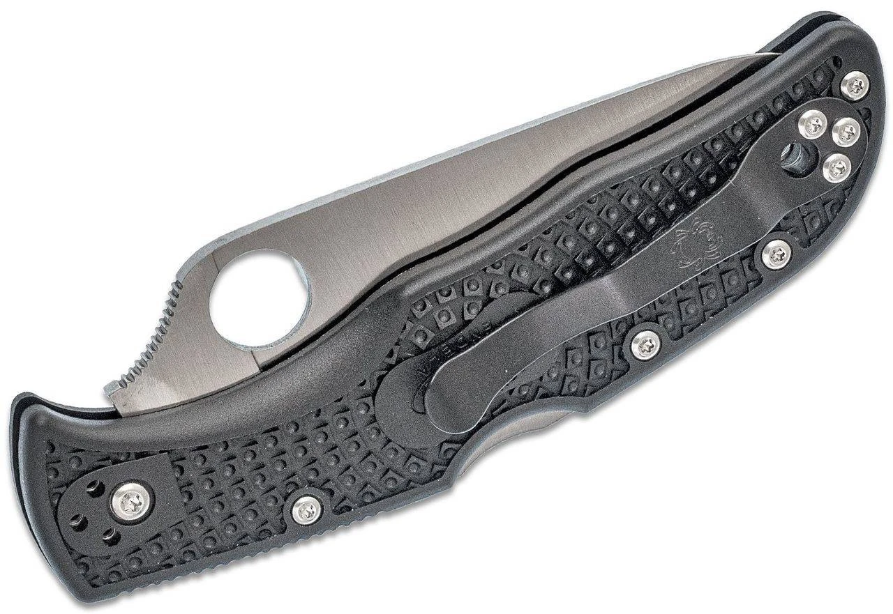 The Spyderco Endela Folding Knife with Lightweight Black Handle is sized to literally split the difference between the iconic Endura 4 and Delica 4 Lightweight knives. The Endela proudly offers all the highly refined, time-tested features of each in a the perfect “in-between” format. Its full-flat-ground blade is crafted from VG-10 stainless steel and proudly sports a fully accessible Trademark Round Hole for ambidextrous one-hand opening.