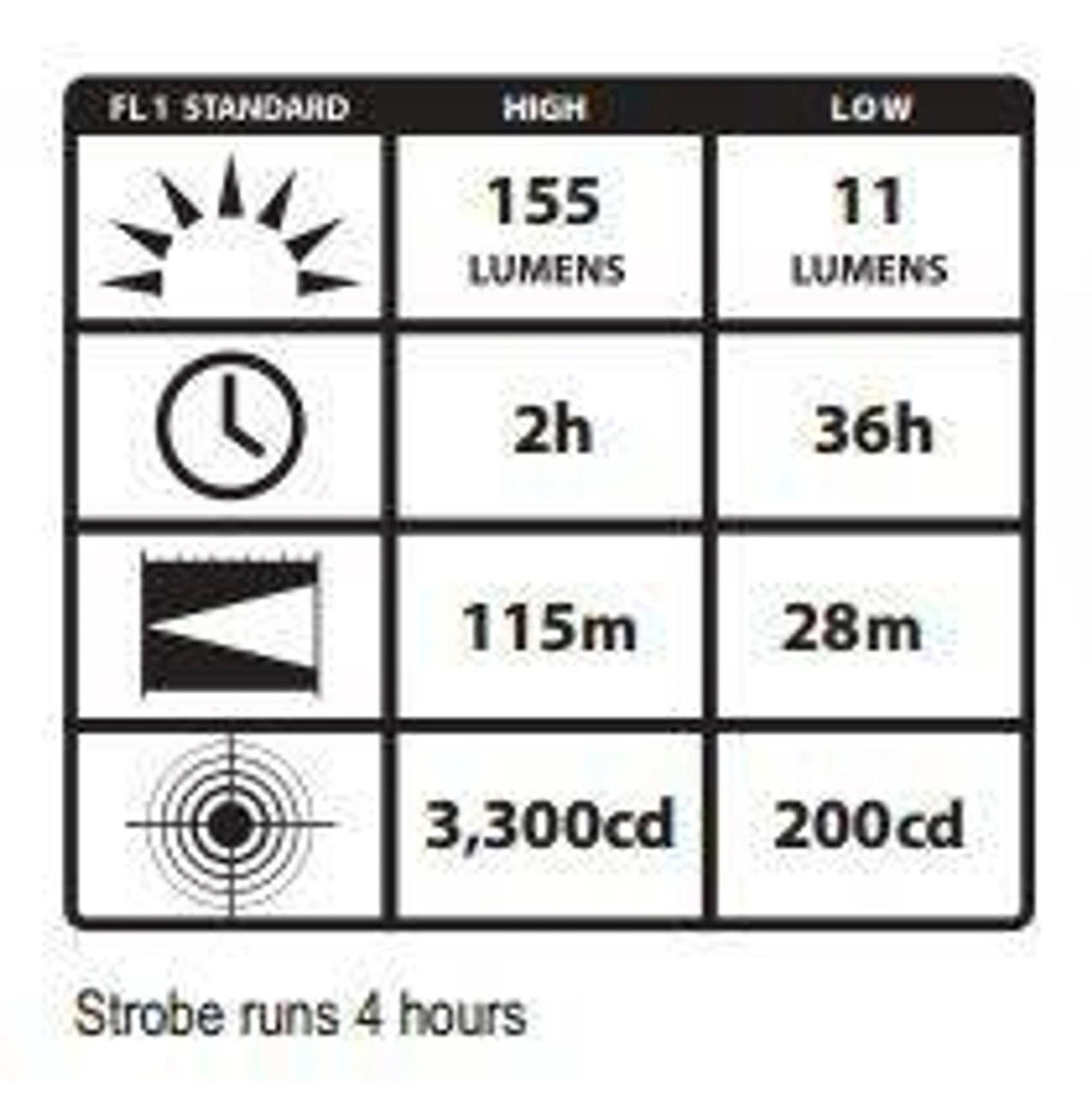 - Low for longer run time: 18 lumens; 400 candela; 40m beam; runs 43 hours