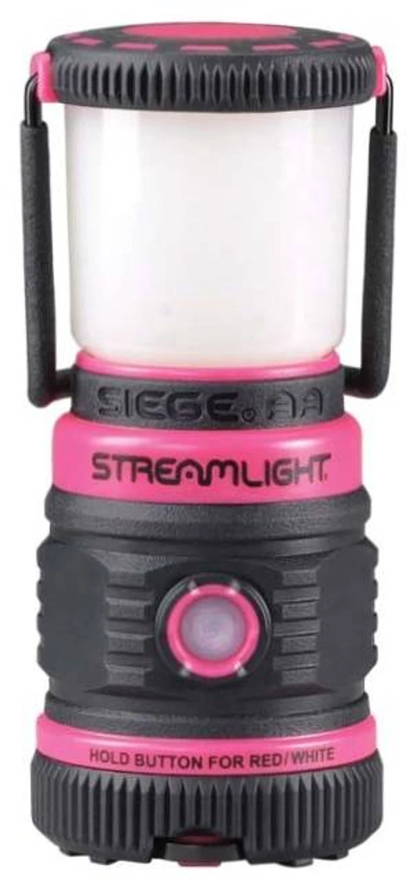 The Streamlight The Siege AA Ultra-Compact Pink Lantern rugged, compact lantern for when you need a lot of light without it taking up a lot of space. The Siege AA uses affordable, easy-to-find AA alkaline batteries to provide 360 degrees of soft, even light that illuminates a large area. Now available in pink to support the Breast Cancer Research Foundation.