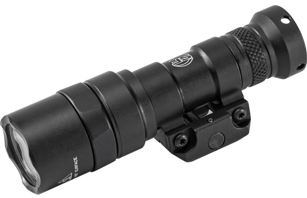 The Surefire M300C 500 Lumen Scout Light is powerful, lightweight, and powered by just a single 123A lithium battery—that features a nearly indestructible LED capable of generating 500 lumens of light focused by a TIR lens into a high-intensity beam with exceptional reach for close- to mid-range operations. The rugged M300 easily and securely attaches to MIL-STD-1913 Picatinny rails via its integral thumbscrew clamp and is activated by clicking its pushbutton tailcap switch or pressing its pressure-activated tape switch, included on appropriate models. Machined from lightweight aerospace aluminum with a Mil-Spec hard anodized finish and O-ring sealed to keep out the elements, the ultra-compact M300 will withstand the rigors of combat without weighing down your weapon.