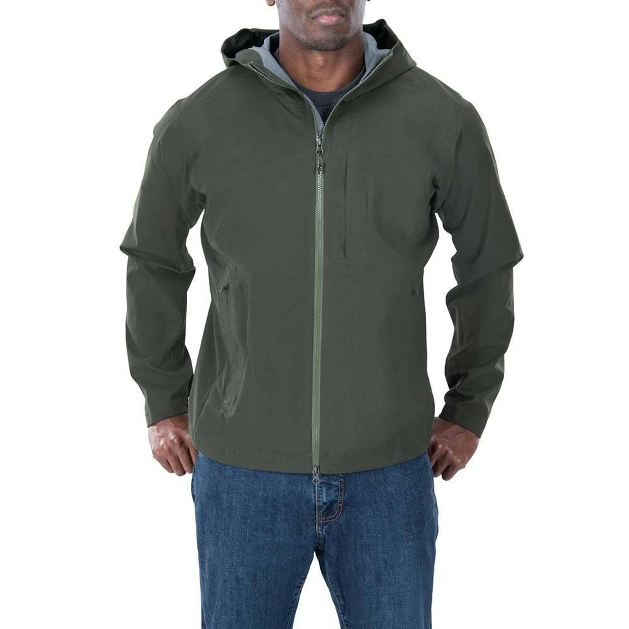 The Vertx Fury Hardshell Jacket features a lightweight, water and windproof breathable shell that will keep you safe and dry during Mother Natures worst days. The Fury Hardshell is powered by 37.5 Active Particle Technology, which provides superior comfort with temperature controlling properties that efficiently capture and release moisture, keeping the body in its ideal microclimate of 37.5% relative humidity with a safe core temperature. The two-way stretch shell, adjustable head-hugging hood and articulated sleeves help the Fury Hardshell move with you when you have to move out. Seamless underarm gussets and the extended tail allow a full range of motion and reduce concerns about exposure of your back and belt. They may be hard to see on its streamlined silhouette, but the three external zippered pockets provide you with plenty of storage space for basic essentials. And, if things escalate, you have discreet access to the gear on your belt through zippers inside the hand pockets. Our AbrasionGuard lining extends the jacket’s life by protecting it from abrasive CCW and EDC gear while the bottom hem adjusts to conditions with a locking shock cord and elasticized cuffs ensure a perfect fit, both with and without additional layers. Wearing the Fury Jacket lets you virtually forget the lousy weather and concentrate fully on your task at hand.